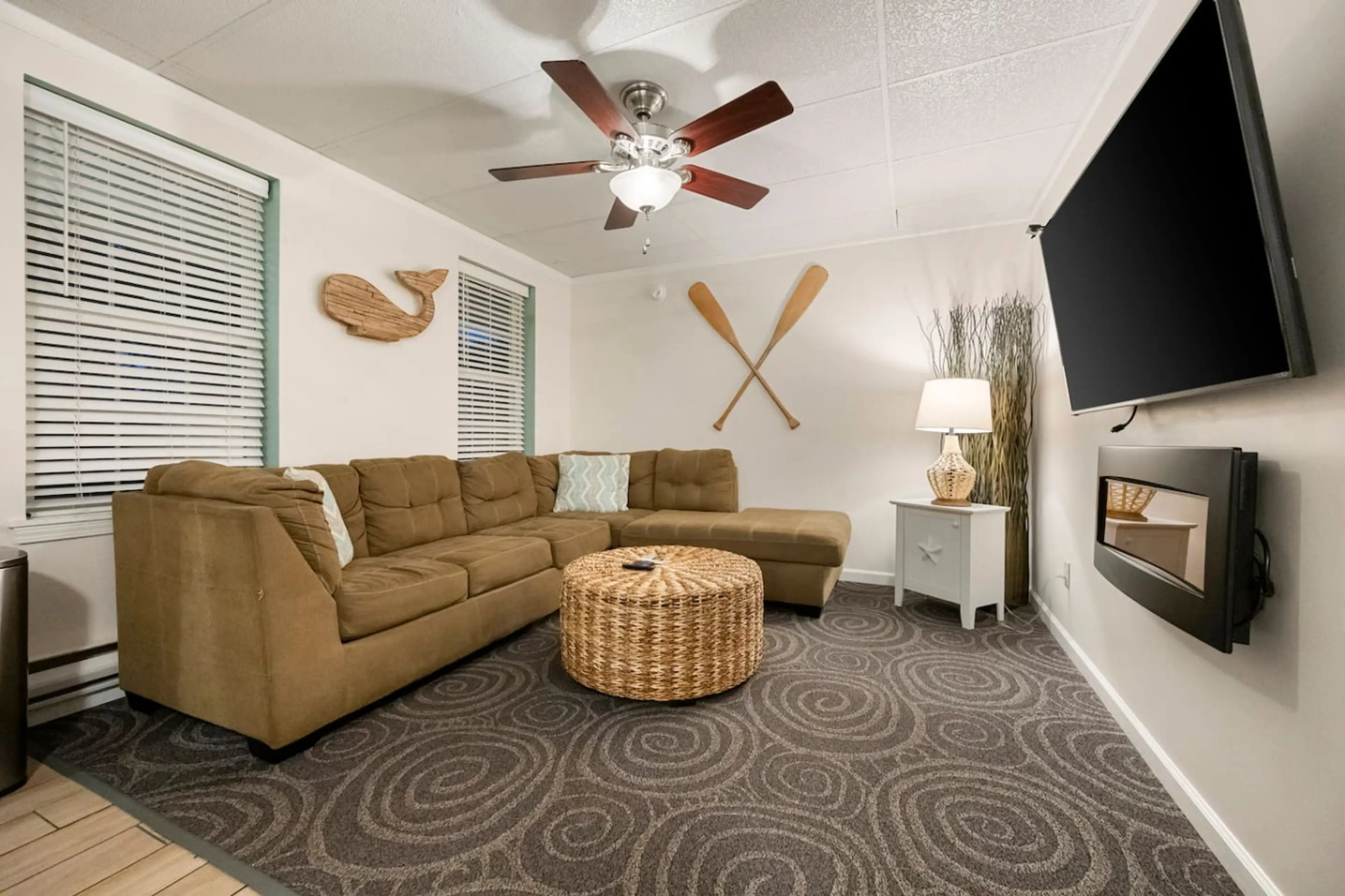 "Sunset Villa" at The Beachside – A bright 2-bedroom suite in the White House building with 4 beds, ideal for families. Includes 1 Queen, 1 Full, and 2 Twin Beds, plus a full bath and kitchenette with microwave and Keurig. Newly remodeled in 2025!! Includes 60” and 32” Roku TVs, WiFi, A/C, and firep...